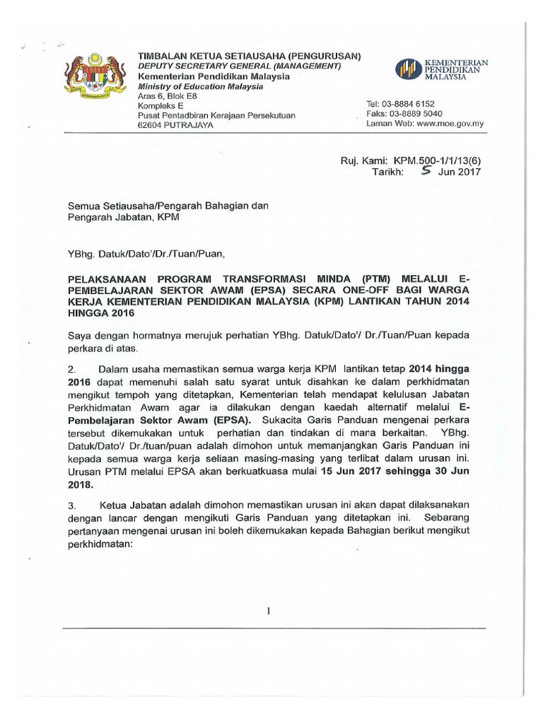 Siaran Ptm Epsa Pdf Kementerian Pendidikan Malaysia Garis Panduan Pelaksanaan Program Transformasi Pdf Document from cdn.vdokumen.net Program transformasi minda (ptm) diperkenalkan untuk memberi pendedahan dan penyesuaian minda pegawai di peringkat awal pelantikan dalam perkhidmatan awam. Program transformasi minda tujuan : Latar belakang program transformasi minda. Bilakah tarikh pembentukan malaysia ? Bilakah tarikh pembentukan malaysia ? Program transformasi minda (ptm) merupakan kursus wajib yang perlu dihadiri oleh penjawat sebagai salah 1 syarat untuk disahkan di dalam selain pegawai perkhidmatan pendidikan (ppp), mereka yang perkhidmatan bukan pendidikan (bpg) yang di bawah kpm turut terlibat dalam ptm. Program pencegahan dadah anjuran aadk dan kpm bagi tahun 2020. Kementerian pendidikan malaysia (kpm) melalui surat edaran bertarikh 5 jun 2017 telah memaklumkan berkaitan pelaksanaan program transformasi minda (ptm) melalui.