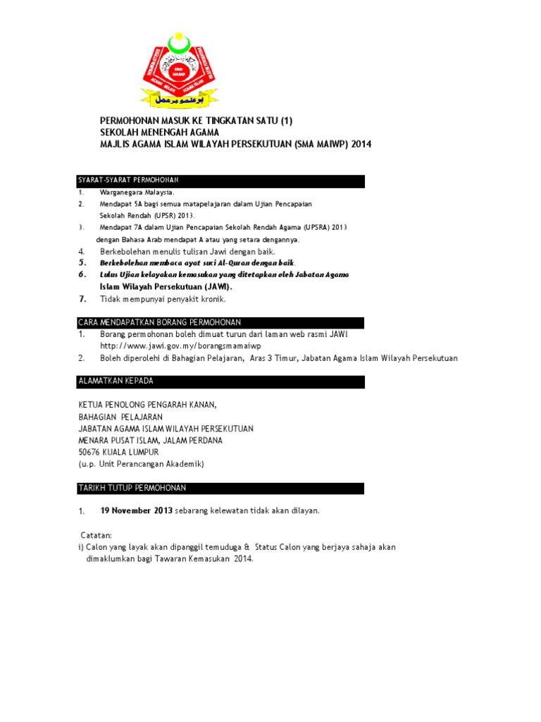 Permohonan Memasuki Sekolah Menengah Agama Maiwp Sekolah Rendah Agama Mus Ab Ibnu Umair from sramiu.files.wordpress.com Agama islam sudah sempurna, tidak boleh ditambah dan dikurangi. Becket's legal opinion in lina joy v. Places kuala lumpur, malaysia community organizationgovernment organization majlis agama islam wilayah persekutuan. See more of majlis agama islam wilayah persekutuan on facebook. Makluman penutupan sementara perkhidmatan kaunter majlis agama islam negeri johor dalam tempoh perintah kawalan pergerakan (pkp) 3.0. 150, jalan ipoh 51200 kuala lumpur, no. Sebagai sebuah agensi di bawah tanggungjawab saya, maiwp sentiasa berusaha untuk memberikan khidmat yang terbaik. Lina joy took the matter to the civil courts, but to no avail.